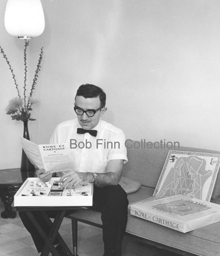 This is the first posting to my blog dedicated to Sid Sackson. The blog will cover the 1960s decade in Sid’s life. During this decade, Sid worked full time as an engineer, while publishing some of his finest games including Focus, Acquire, and many others. The blog will detail Sid’s fascinating life 50 years ago with an abundance of material from Sid’s archive. Here is a publicity photo of Sid in his home circa 1965. The beautiful game young Sid is holding “Rome Et Carthage” was purchased by AGPI member John Ellerbe in lot #1 of the first Sackson auction. This blog will be updated on an irregular basis.